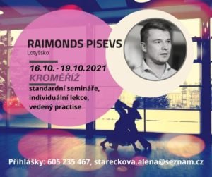 Předmistrovský camp s Raimondsem PisevsemZveme vás na standardní camp s lotyšským trenérem Raimondsem Pisevsem. Připravte se na Mistrovství ČR v Kroměříži. Přihlášky: stareckova.alena@seznam.cz, tel: 605 235 467. 0
